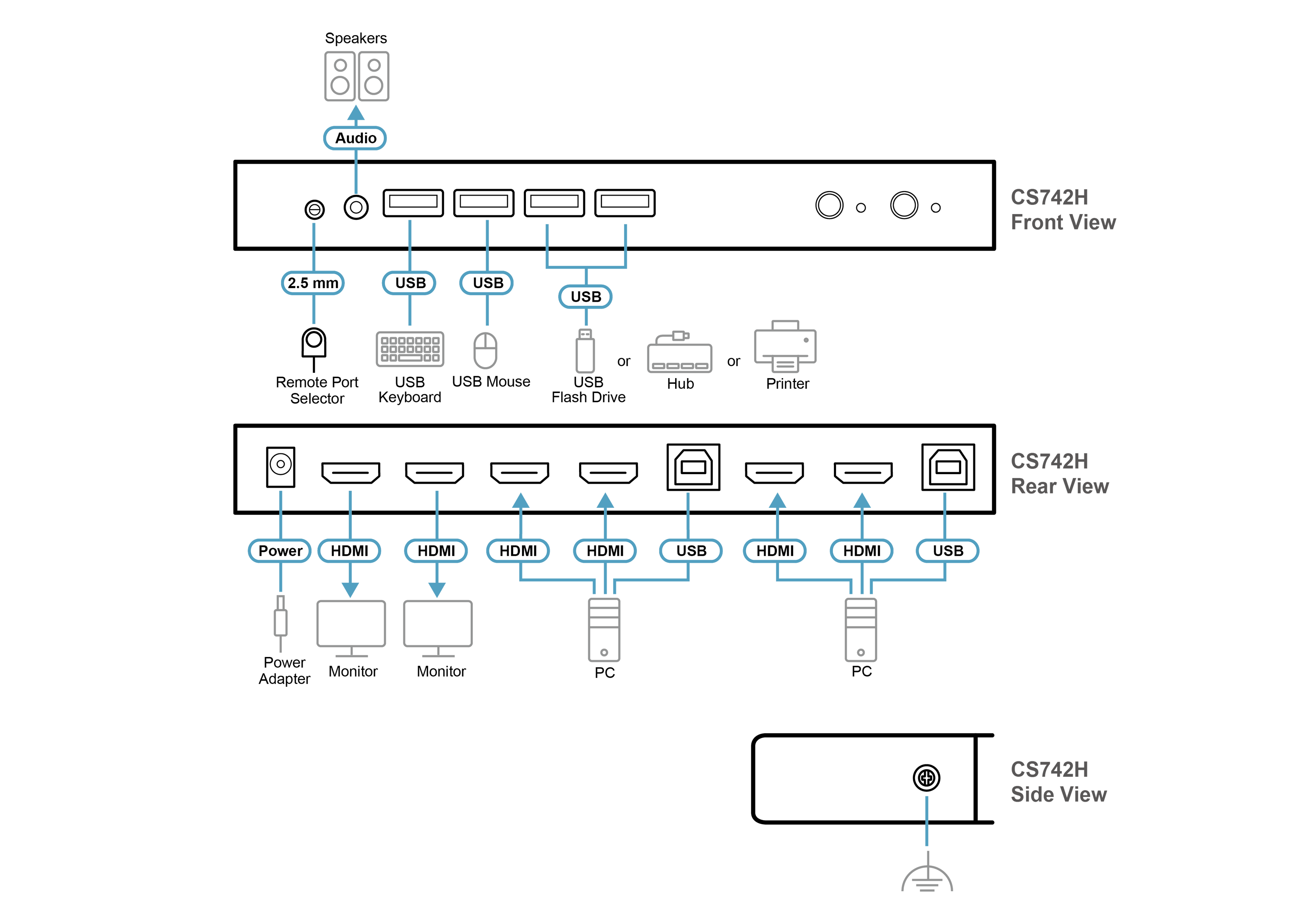 ATEN CS742H-AT-G: 2-портовый USB HDMI KVM-переключатель