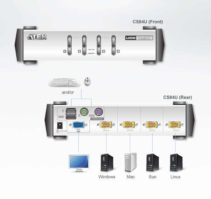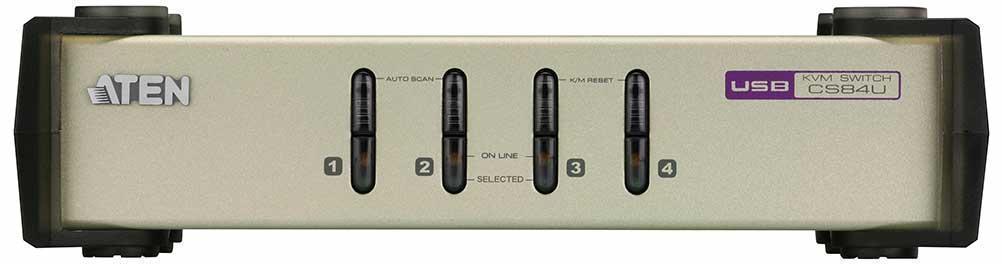 CS84U-AT – KVM Переключатель ATEN CS84U, настольное устройство управления, обеспечивающее пользователям доступ к четырем компьютерам с одной КВМ-консоли (клавиатуры и мыши PS/2 или USB и VGA-монитора). Кроме того, CS84U поддерживает новую технологию ATEN – Video DynaSync™, позволяющую обойти проблемы с дисплеем при загрузке и оптимизирующую разрешение экрана.Коммутатор легко и быстро настраивается – просто вставьте кабели в соответствующие порты. Не нужно конфигурировать ПО, запускать установщики, нет проблем с совместимостью. Поскольку CS84U непосредственно перехватывает ввод с клавиатуры, он работает на многих вычислительных платформах.