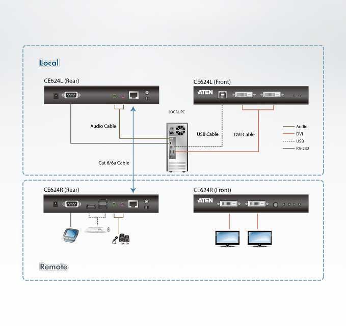CE624-AT-G – KVM Удлинитель ATEN CE624 поддерживает функционал Dual View (возможность подключения двух устройств отображения с интерфейсом DVI) и новейшую технологию HDBaseT™ 2.0, которая позволяет обеспечить высоконадежную передачу наиболее распространенных типов сигналов - видео, аудио, USB и RS-232.Устройство состоит из двух модулей - локального CE624L и удаленного CE624R, соедняемых одним кабеляем Cat.6/6a. KVM Удлинитель CE624 способен передавать высококачественное DVI-видео с поддержкой функционала Dual View, 2-канальный цифровой звук Pсм.