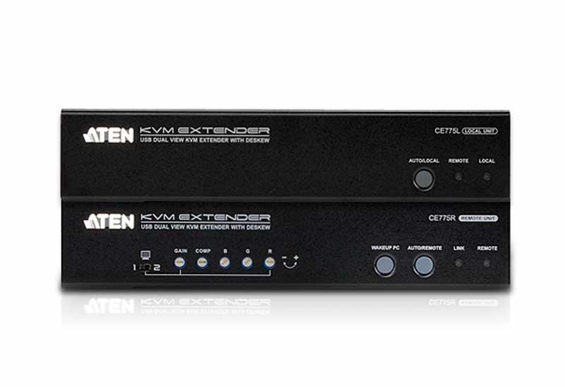 CE775-AT-G – KVM Удлинитель ATEN CE775 с функцией Deskew обеспечивает доступ к компьютеру с консоли, удаленной на расстояниe до 300 метров. Функция Dual View позволяет передать видеосигнал от двухмониторной видеокарты на два удаленных монитора. C помощью функции PC Wake-UP можно выводить ПК из спящего режима удаленно простым нажатием кнопки на удаленном модуле CE775R. Данная функция обеспечивается передачей специального сигнала на порт RS232 подключенного компьютера и необходимости в постоянном присутствии пользователя в непосредственной близости с ПК нет, что делает работу с компьютерной системой офиса более эффективной и гибкой.В переднюю панель модуля CE775R удлинителя встроен тюнер для регулировки качества изображения. Кроме того, возможна автоматическая регулировка времени задержки сигналов RGB в зависимости от расстояния.