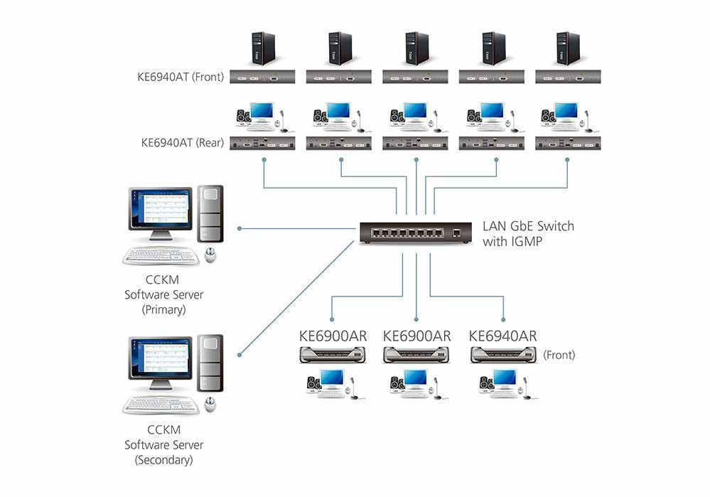 Являясь матричным решением на основе IP-подключения, KE6900A может использоваться в качестве удлинителя работающего в режимах «точка-точка» / «точка-многоточка» / «многоточка-точка», или интегрироваться в матричную KVM-систему с доступом по IP (режим «многоточка-многоточка») в сочетании с программным обеспечением для управления KE Matrix Management Software (CCKM), обеспечивающим наиболее гибкое применение в различных рабочих средах.