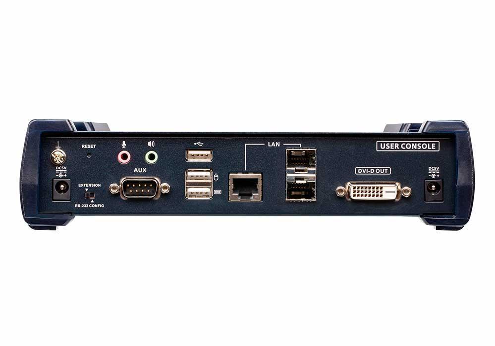 - 1x 2K DVI-D Dual Link KVM-удлинитель с доступом по IP и двумя слотами SFP KE6920R (приемник)