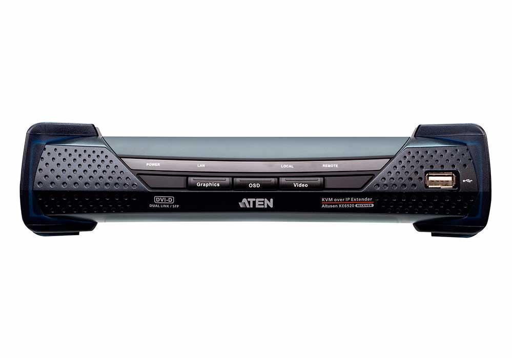 2K DVI-D Dual Link KVM-удлинитель ATEN KE6920 с доступом по IP и двумя слотами SFP состоит из высокопроизводительного IP-передатчика (KE6920T), который подключается к компьютеру и приемника (KE6920R), обеспечивающего консольный доступ из удаленного или отдельного расположения. Он предоставляет доступ с удаленной USB-консоли (включающей USB-клавиатуру, мышь и DVI-монитор) к компьютерной системе через интрасеть, позволяя пользователям расположить компьютеры в безопасной среде с контролируемой температурой, изолированной от рабочей среды пользователя.