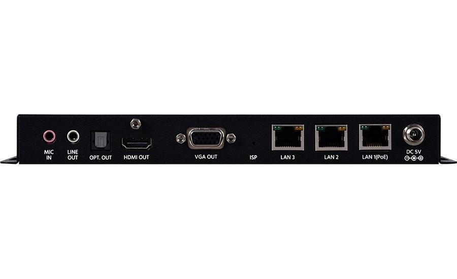- Принимает сигналы видео, аудио и управления по сети на основе стека протоколов TCP/IP в режиме Unicast (один-одному) или Multicast (один-многим)