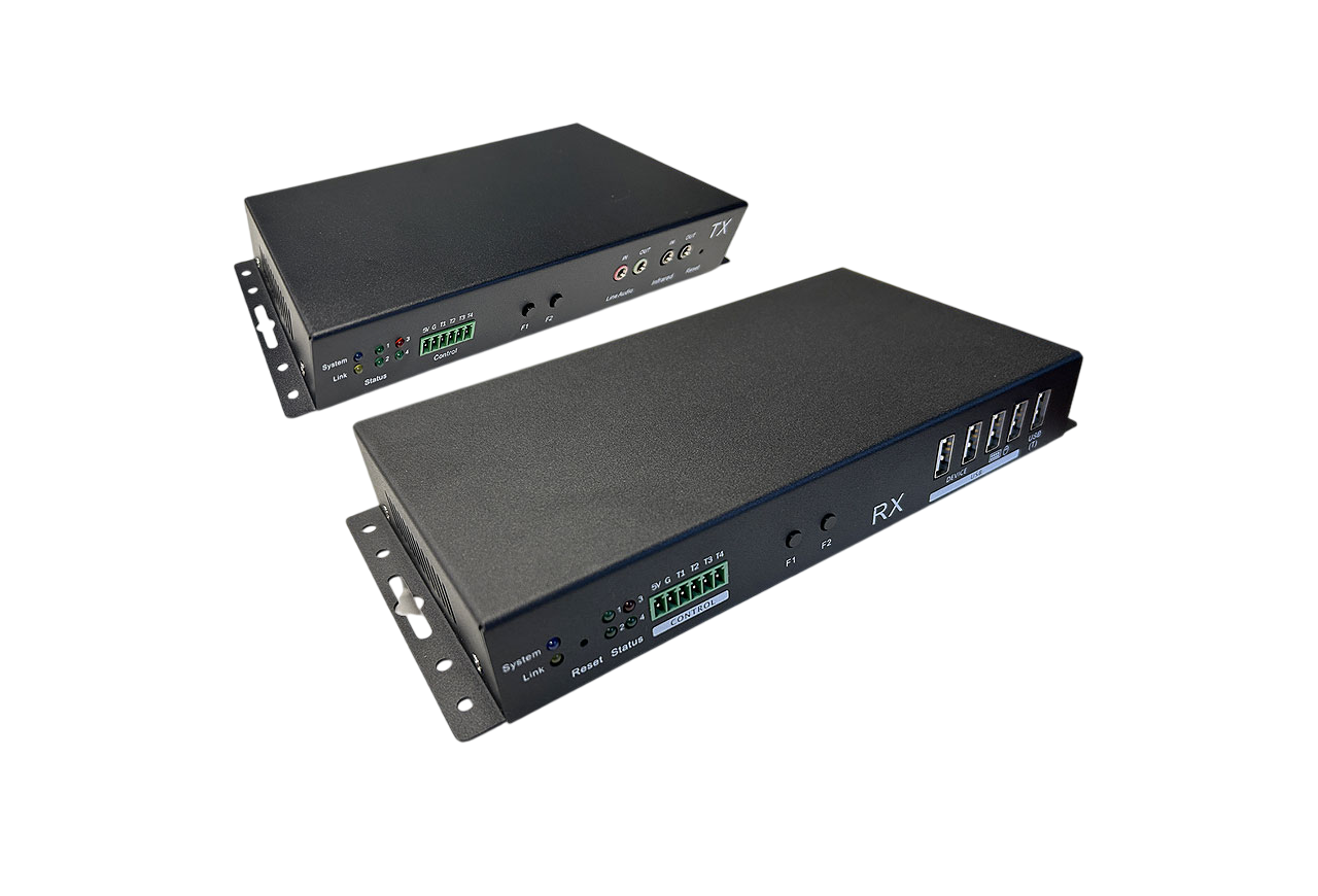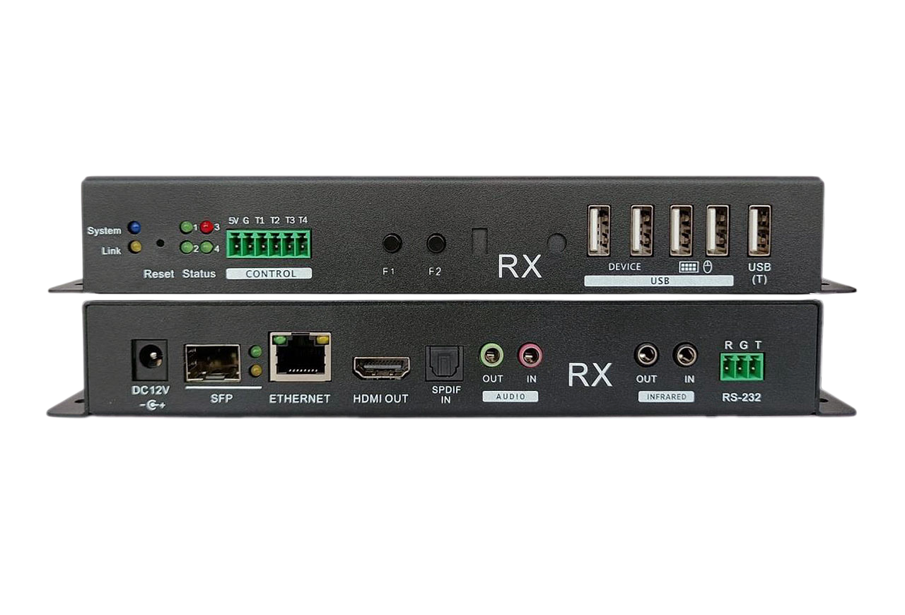 TNT MMS-9530HF – IP-KVM удлинитель для организации рабочих мест с высокими функциональными требованиями. Удлинитель состоит из двух блоков – передатчика TNT MMS-9530HLF-T и приемника TNT MMS-9530HF-R, поставляемых в комплекте.Передача данных от передатчика к приемнику осуществляется в пределах локальной сети (LAN, без маршрутизации пакетов), посредством использования Gigabit Ethernet (1000Base-T) и протокола TCP/IP. В передатчике и приемнике предусмотрен SFP слот для установки оптического модуля (поставляются в комплекте).