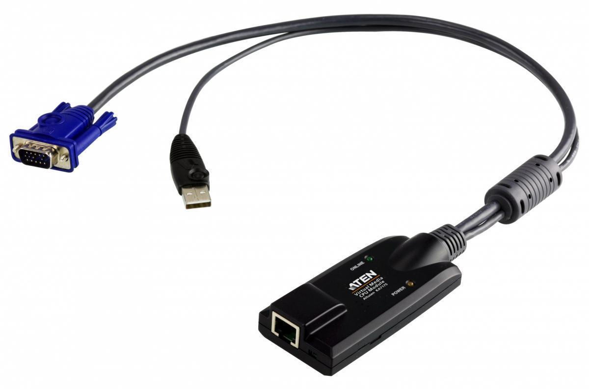 KA7175-AX – KVM адаптер ATEN KA7175 соединяет KVM переключатель с видео и USB портами целевого компьютера. KA7175 принадлежит новому поколению модульных адаптеров, отличающихся небольшими размерами и малым весом. Устройство имеет улучшенную систему компенсации искажения сигнала, что обеспечивает высокое качество видеоизображения. Модуль KA7175 поддерживает функцию Virtual Media обеспечивающую доступ к USB порту сервера с удаленного компьютера.Характеристики ATEN KA7175: