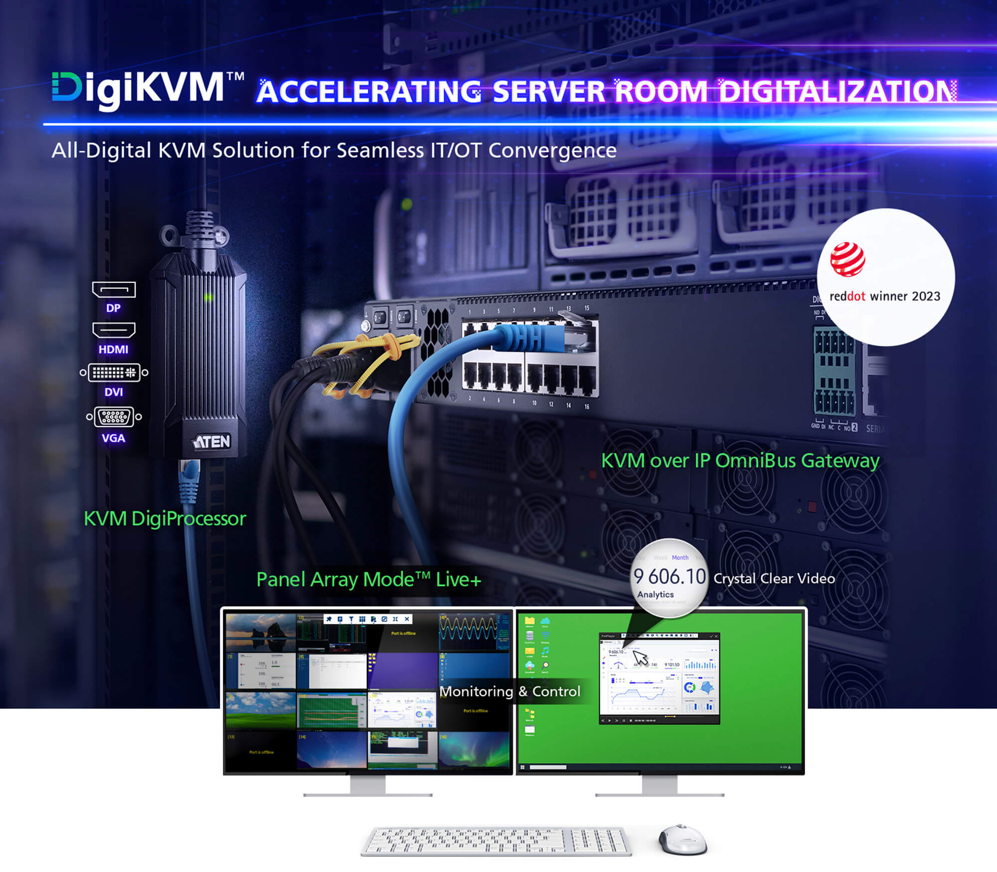 Устройства DigiKVM™ моделей KG0016/KG0032, являются примером такого цифрового перехода. OmniBus, это полностью цифровой KVM-шлюз с доступом по IP, способствующий цифровой трансформации в таких пространствах, как серверные помещения и центры обработки данных. Обладая безопасным порталом, он предоставляет возможности централизованного управления и удаленного доступа к серверу в режиме реального времени. Независимо от типа сигнала данных, поступающих от подключенного цифрового KVM-адаптера, они оцифровываются и защищаются, обеспечивая быстрое и четкое отображение с поразительной точностью визуализации.