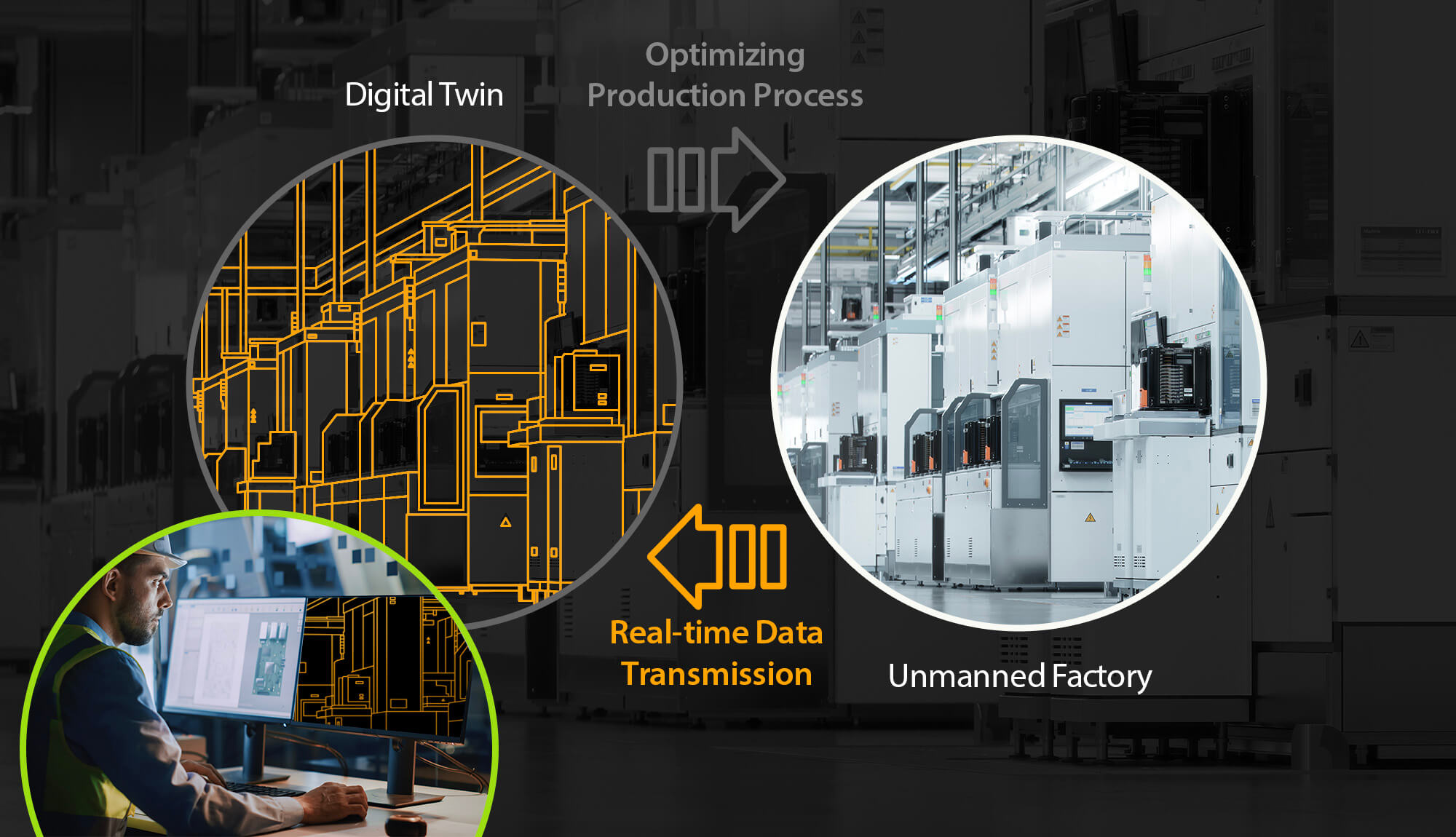 Благодаря использованию OmniBus KVM-шлюза с доступом по IP и KVM-адаптера DigiProcessor данные об оборудовании, собранные на производственной линии, можно отслеживать и обрабатывать в режиме реального времени с помощью удаленной консоли. Это избавляет от необходимости постоянно входить на производственную линию или в чистое помещение для выполнения действий. Такой подход с цифровой парой, облегчает цифровизацию производства, упорядочивая и оптимизируя процессы производственной линии.
