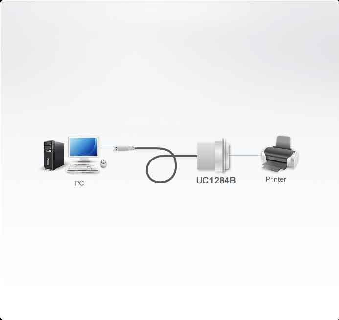 ATEN UC1284B-AT - переходник с USB на параллельный порт. Он преобразует сигналы USB от ПК, ноутбуков и портативных компьютеров в сигналы для параллельного порта принтера.